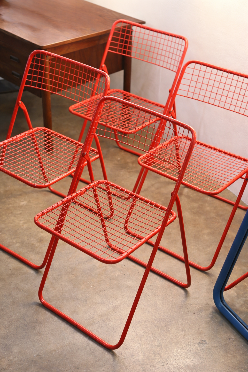 Série de 4 chaises pliantes « Ted Net » en métal rouge du designer Niels Gammelgaard pour Ikéa, 1978.